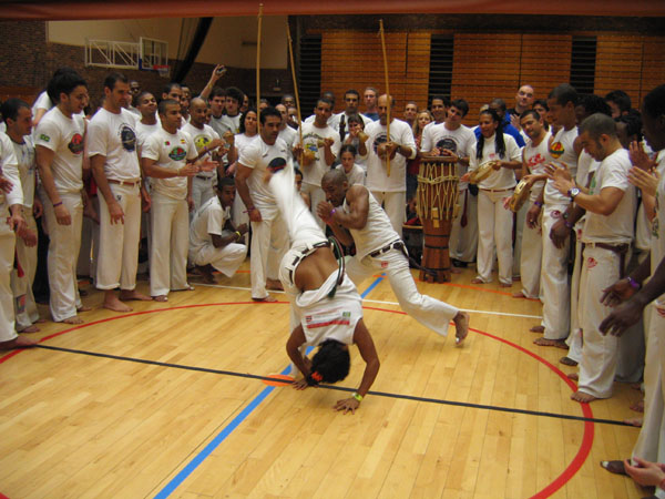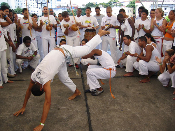 Капоэйра — бразильский вид боевого искусства, напоминающий танец, в котором используется преимущественно техника ног при тщательно разработанных перемещениях, включающих элементы акробатики, ритм во время тренировки задается традиционными музыкальными инструментами.